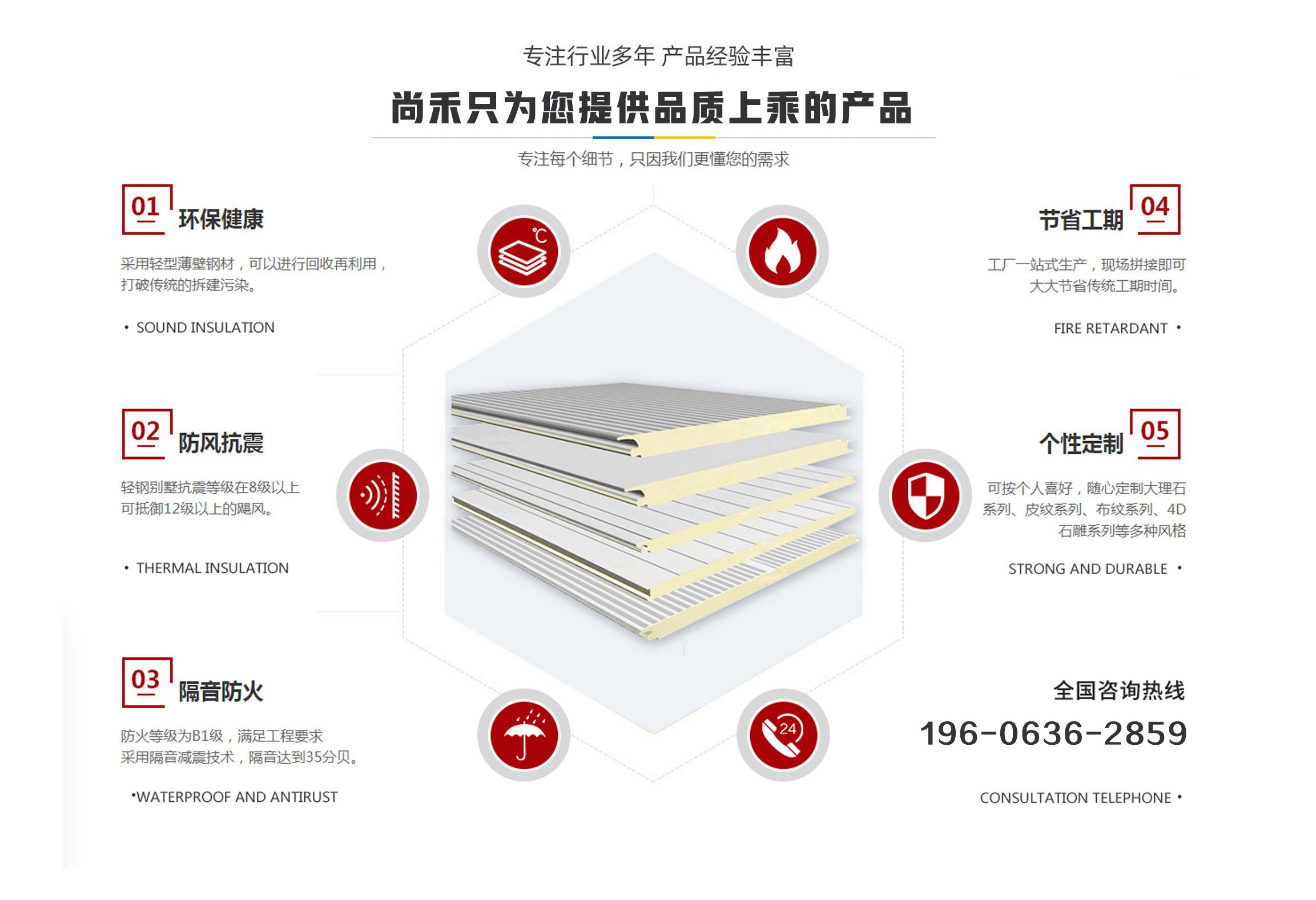 山東尚禾經貿有限公司是集板材設計、研發、生產、施工、一體化的科技公司,并在同行業中率先通過了質量、環境、安全管理體系認證。公司2011年投入資金2000余萬元引進世界先進的聚氨酯節能板連續生產線、意大利進口發泡系統,采用六組份在線自動操作混合澆注技術,在線一次性完成社會配料中心或工廠的配比混合工藝,并可以根據溫度在線自動調整,從而生產處與眾不同的高強度、節能型、綠色環保的聚氨酯夾芯板。(其使用年限高于同行業其他品牌5-10年)  公司主要經營范圍包括聚氨酯夾芯板,PU夾芯板,冷庫板,潔凈板,聚氨酯冷庫板,冷庫保溫板的設計、生產、銷售、技術指導、安裝及一體、以及進出口業務,是中部六省最大的綠色節能建材生產基地。聚氨酯夾芯板年產200萬平方米、PU夾芯板、冷庫保溫板500萬平方米、鏈整產業綜合實力,開創了六省至中西部創新型中小名企總部基地,并將著力推進中國中西部地區集成房屋住宅產業化發展進程?! 】萍紕撔?、節能典范。千萬間始終秉承“誠信、合作”的企業文化精髓,長期致力于鋼板材結構節能建筑產業,愿與社會各界攜手合作,共鑄綠色、環保美好未來。 產品具有良好的絕熱、阻燃、隔音、環保、耐久性能,可廣泛應用于工業、商用建筑內外墻、以及民用建筑外墻保溫、空調通風系統、專用防火保溫門等領域?! ∥覀兪冀K秉承...